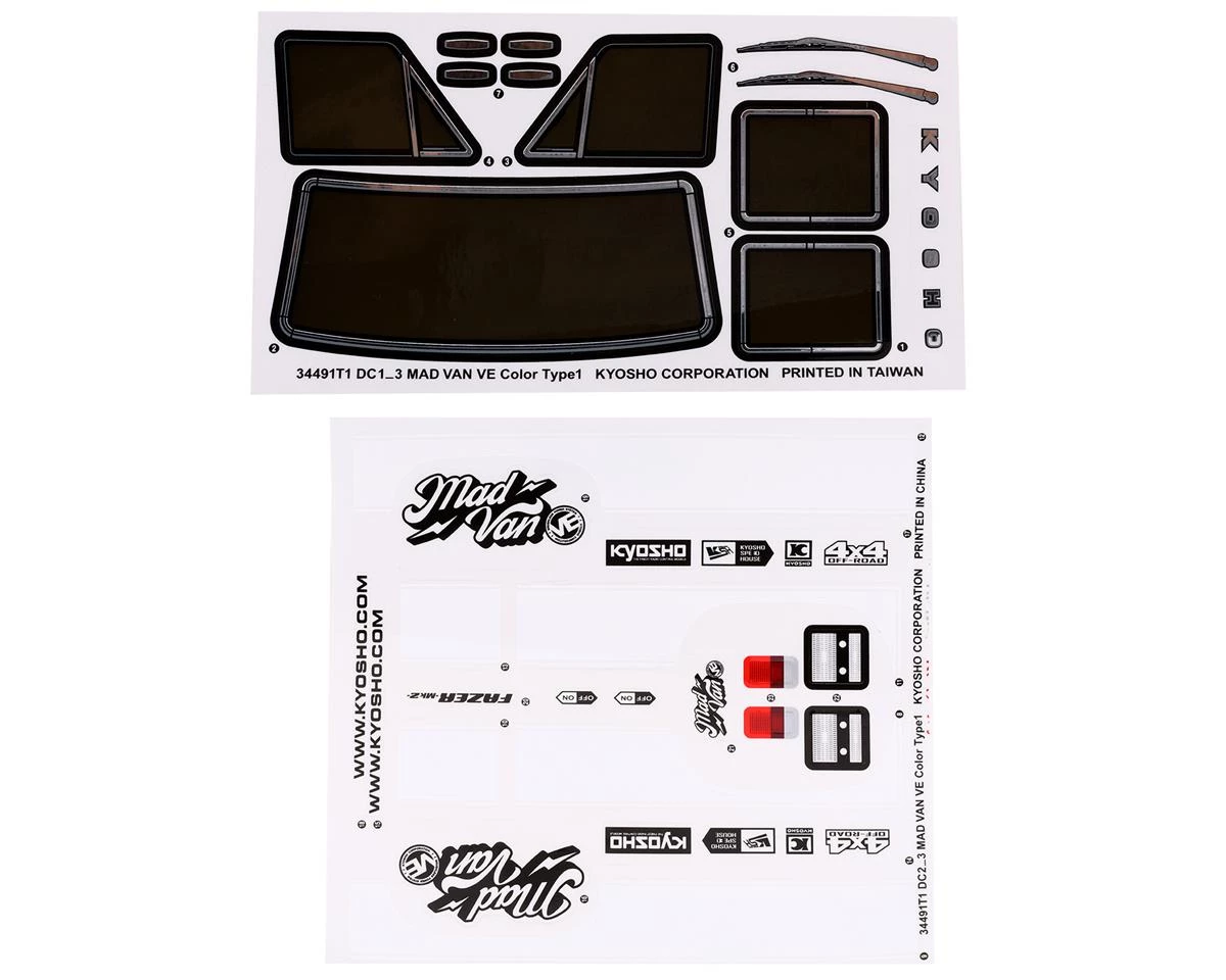 The Kyosho Mad Van VE Body Set is a clear option for the Kyosho Mad Van VE. Package includes clear body, window masks, body trim decals, body accessories, and hardware.