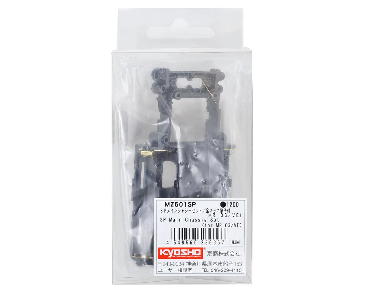 The Kyosho MR-03 VE SP Main Chassis Set is an optional upgrade for the MR-03 S and VE series models that features gold plated battery terminals to help reduce resistance.Â