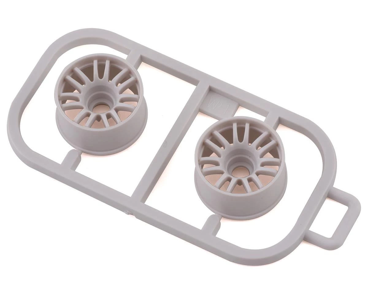 This is a optional set of two Kyosho Mini-Z Rays RE30 Multi Wheel II. These are the optional wide, +1.0 Offset Wheels, and are a great option for tuning Mini-Z models for improved handling, or to suit different bodies. Plus, the bright white plastic is perfect for adding a personalized touch with your prefered color paint.Â