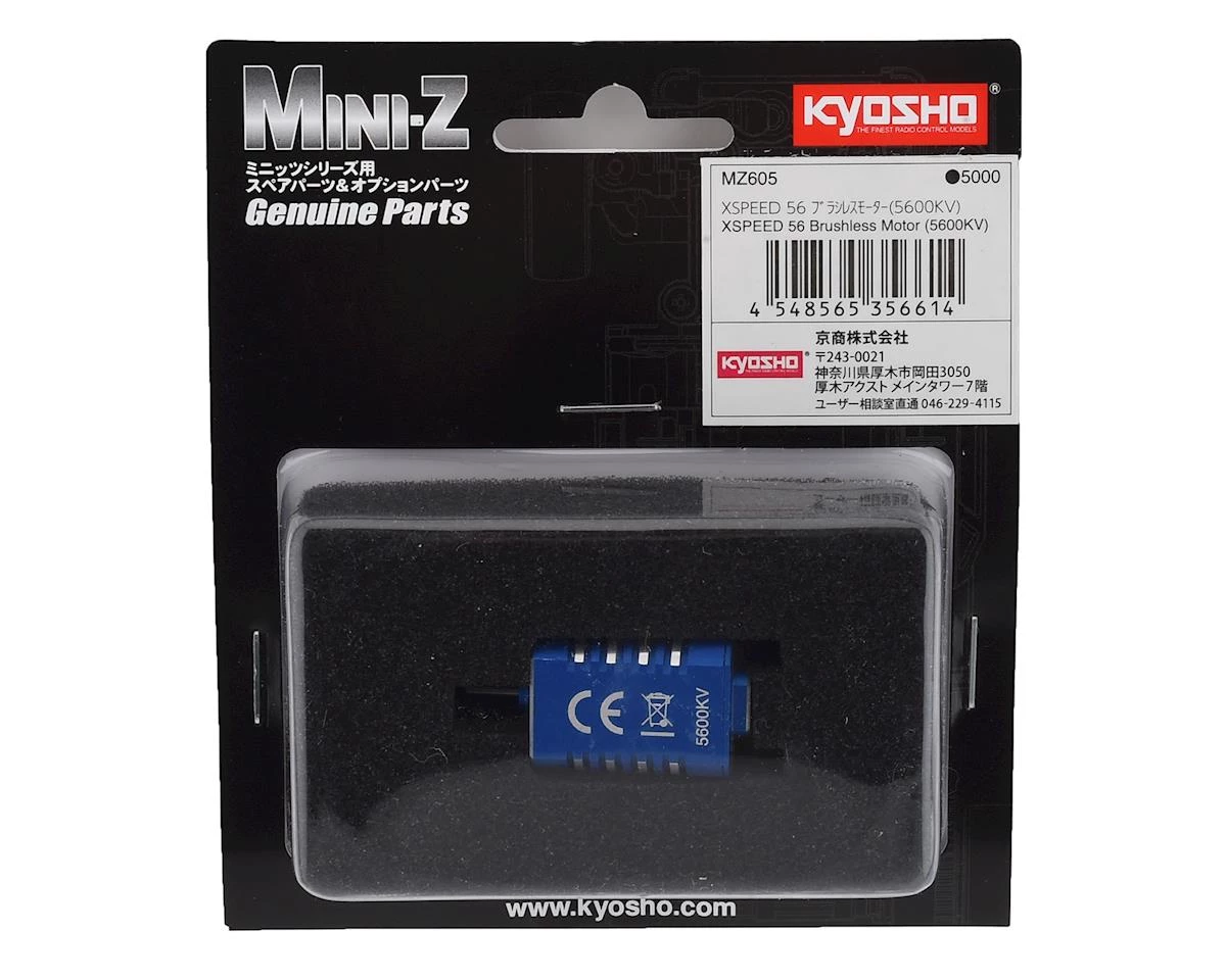 Kyosho MINI-Z XSpeed 56 Brushless Motor. Package includes one 5600kv brushless motor with factory installed bullet connectors.Â