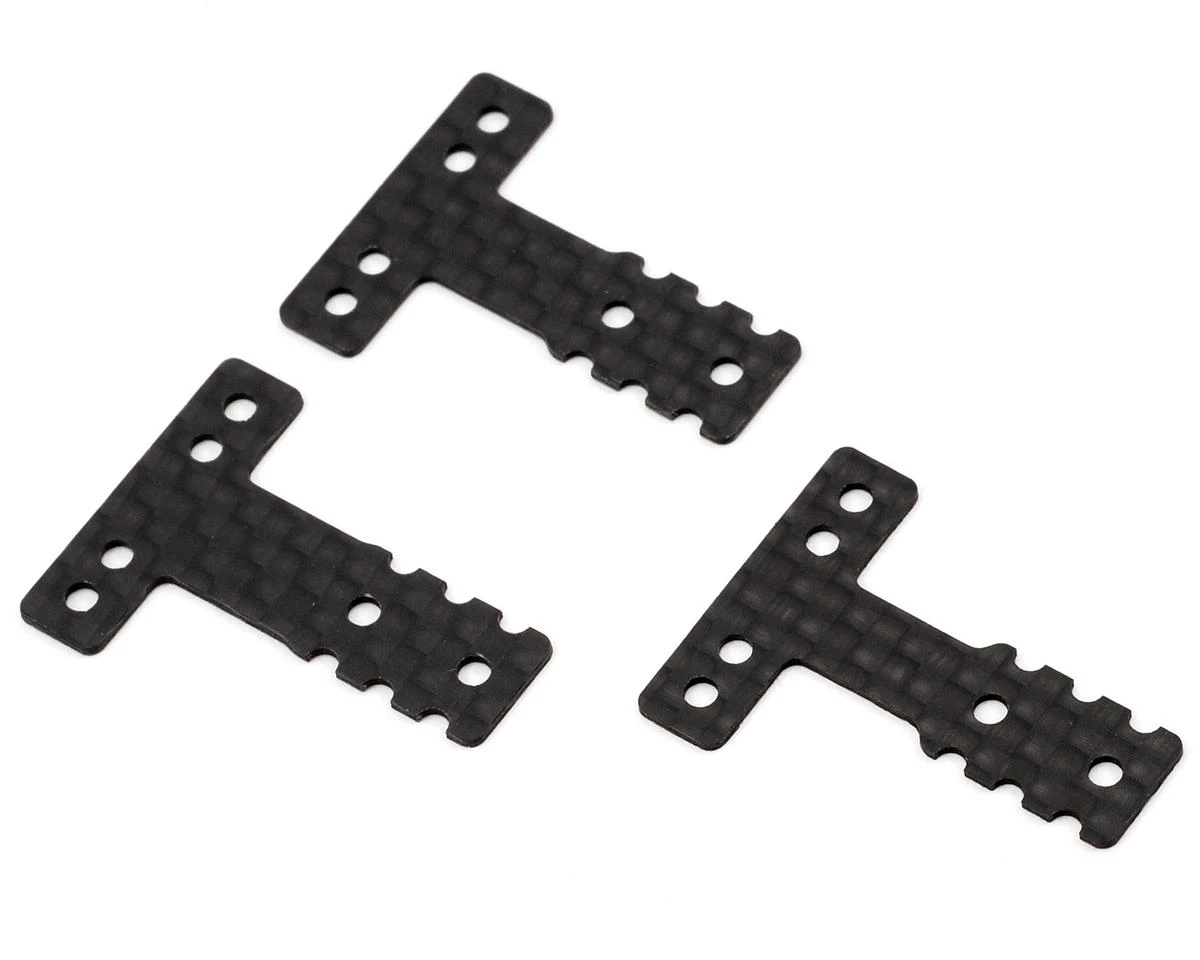This is an optional Kyosho MM/LM-Type Carbon Fiber Rear Suspension Plate Set, and is intended for use with the Kyosho Mini-Z MR-03 MM and LM-Type chassis. This suspension plate set will increase the rigidity in the rear of the chassis and is ideal for high traction surfaces. Includes three different width plates, each with different levels of rigidity and will allow you to tune the flex of the chassis to suit a variety of track conditions.