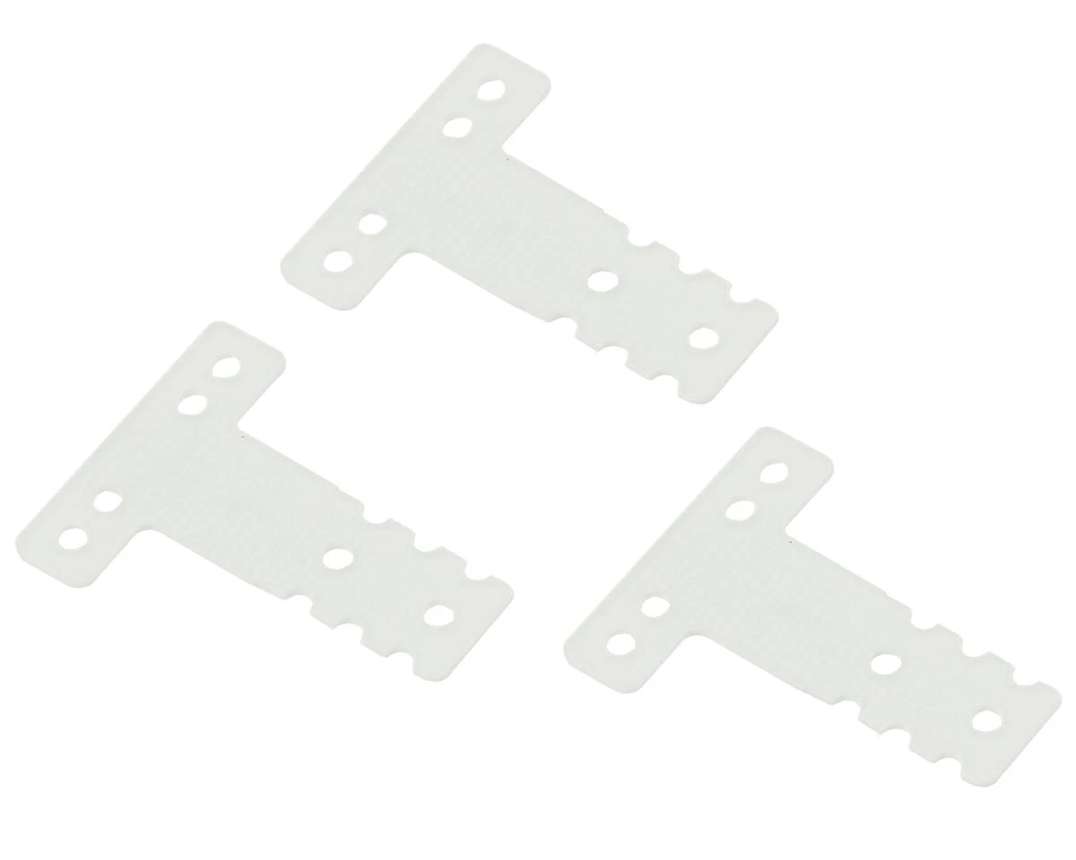This is an optional Kyosho MM/LM-Type FRP Rear Suspension Plate Set, and is intended for use with the Kyosho Mini-Z MR-03 chassis. This suspension plate set provides increased flex compared to the carbon fiber plates and is ideal for low traction surfaces. Includes three different width plates, each with different levels of rigidity and will allow you to tune the flex of the chassis to suit a variety of track conditions.