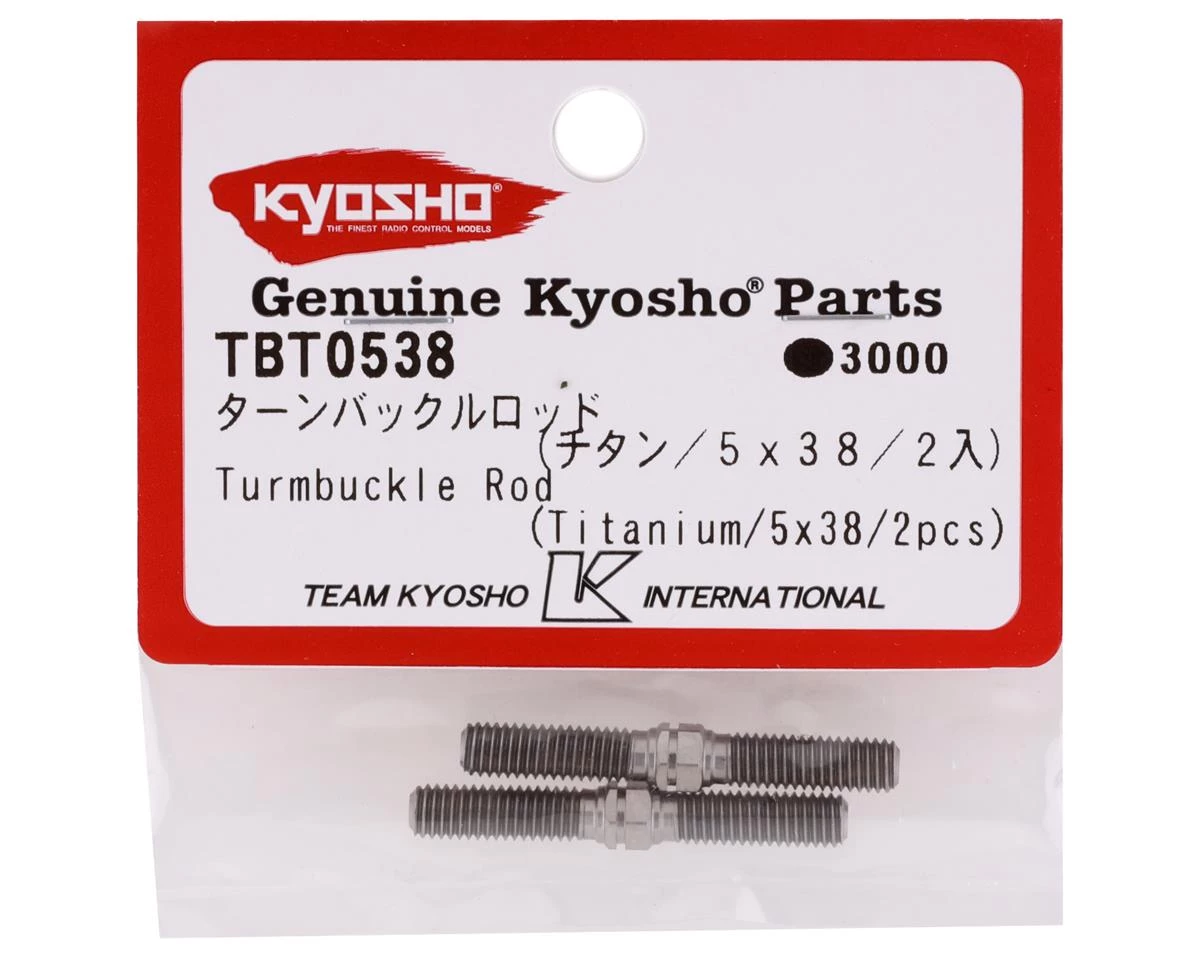 Kyosho MP10 5x38mm Titanium Turnbuckle. These optional turnbuckles are designed to be used with the Kyosho MP10. Package includes two titanium turnbuckles.