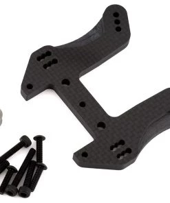 Kyosho MP10 Carbon Long Front Shock Tower. This optional shock tower is intended for the Kyosho MP10 equipped with long shocks. The lightweight construction allows for a lower CG and slightly more flex than the aluminum shocks. This added flex provides a different feel that can aid setup on various tracks. Package includes one shock tower, two standoffs and hardware.Â