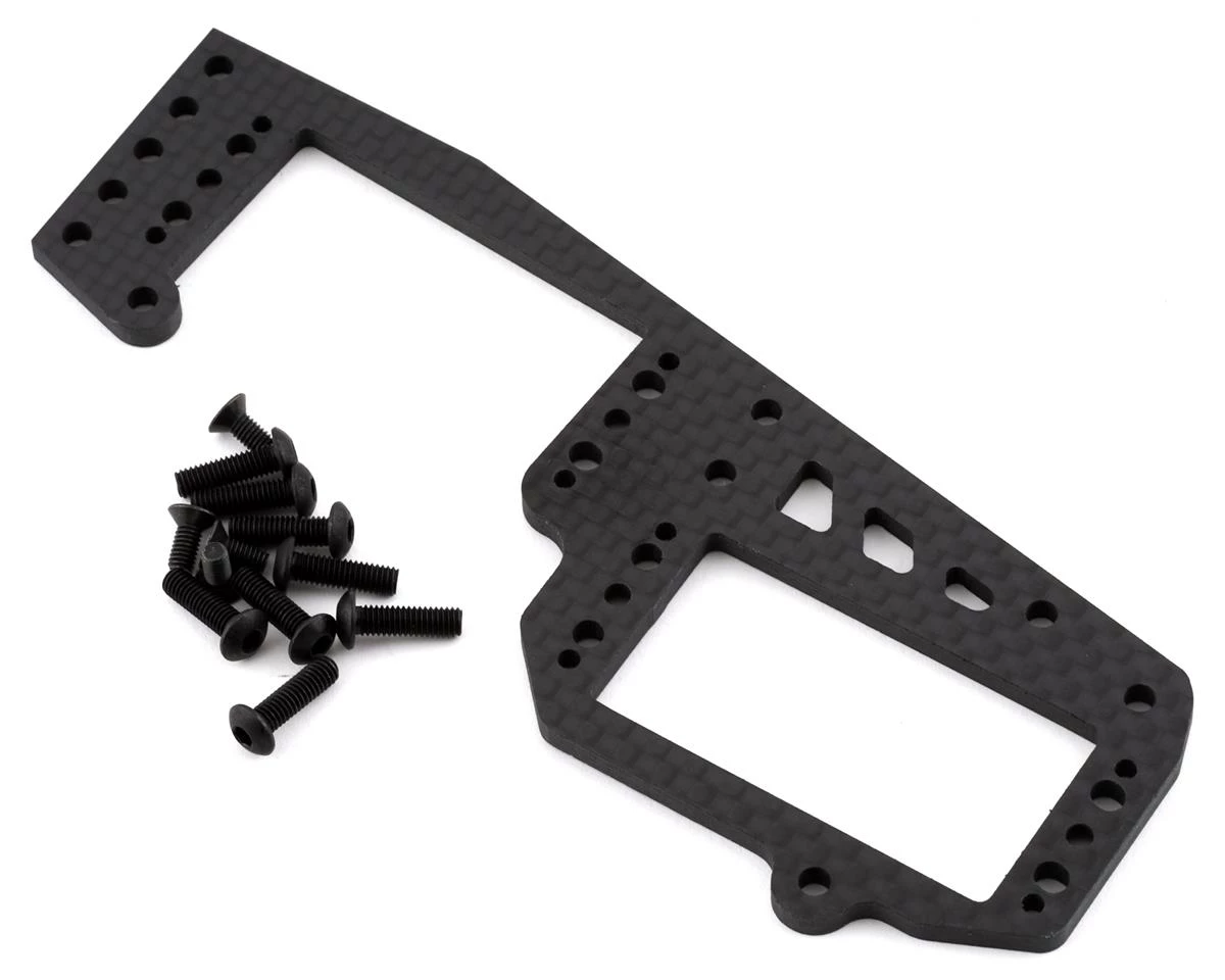 Kyosho MP10 Carbon Radio Plate. This optional radio plate has been designed to be extremely light weight without sacrificing durability. Package includes one carbon radio plate with hardware intended for the Kyosho MP10.