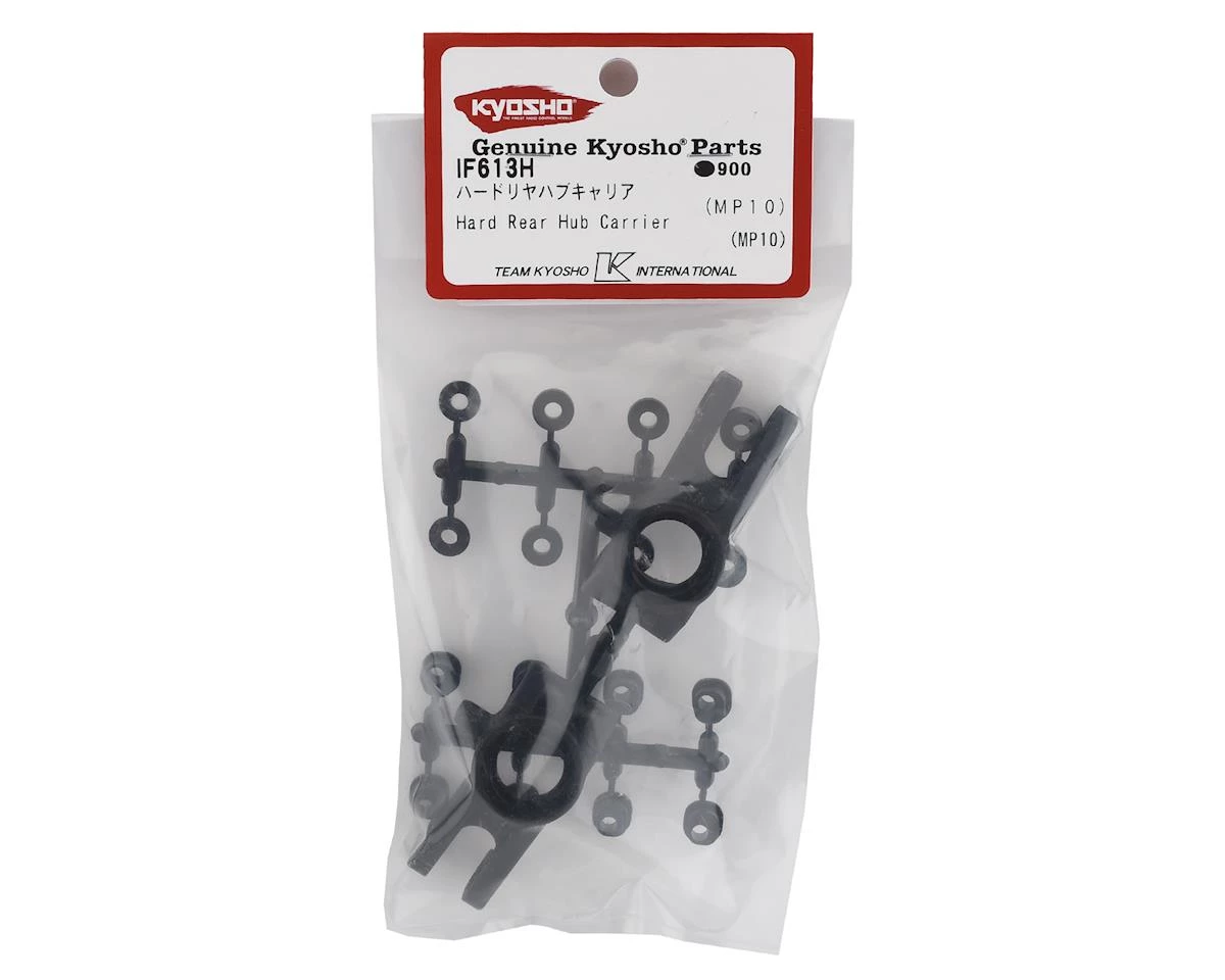 This is a replacement Kyosho MP10 Hard Rear Hub Carrier Set, including replacement hub inserts and spacers.