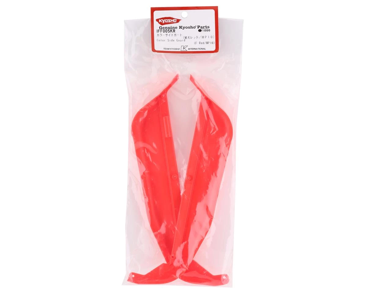 Kyosho MP10 Side Guard Set. These optional side guards are intended for the Kyosho MP10. Package includes two red side guards.
