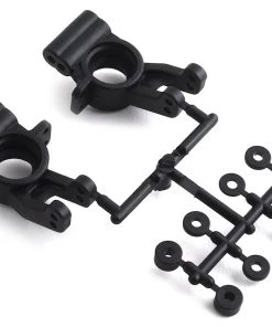 This is a pack of optional Kyosho “Hard” Rear Hub Carriers, compatible with the MP9 series, as well as the GT3 line of vehicles. These are the updated Rear Hub Carriers that have been molded from Kyosho’s Hard composite blend. This set also includes the spacers used for changing the wheelbase settings on the car.
