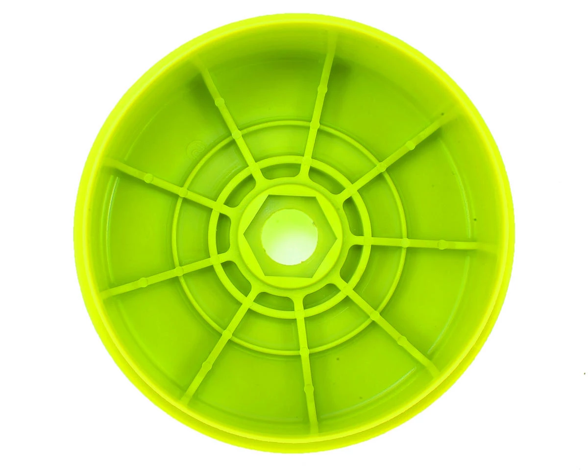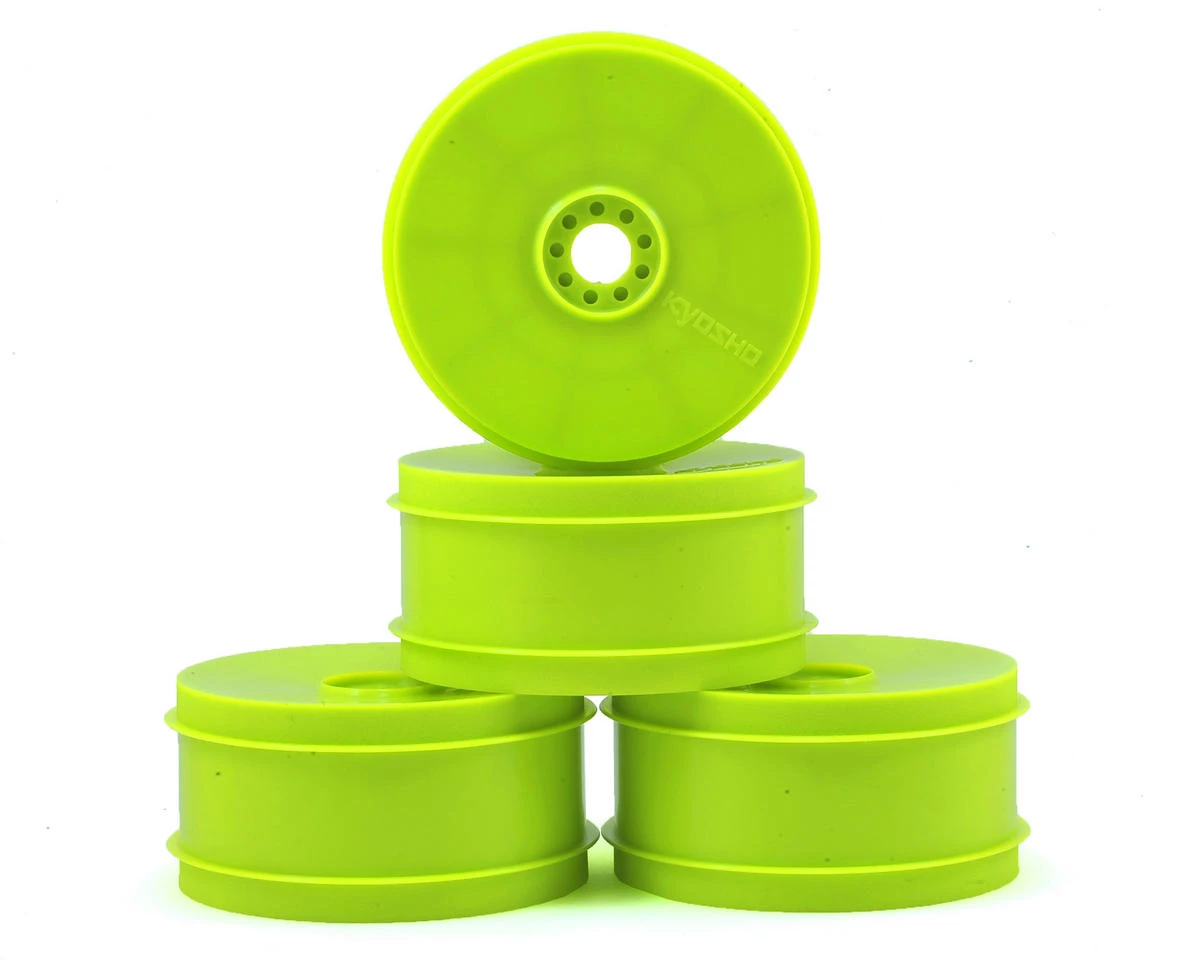 Kyosho MP9 TKI4 1/8th Off Road Dish Wheels are available in a variety of colors. But these wheels offer more than just color options. They are lighter than before, and have a textured gluing surface that provides a more secure bond between the wheel and tire. Plus, they are lighter than the previous Kyosho wheel to reduce rotating mass and improve acceleration.Â