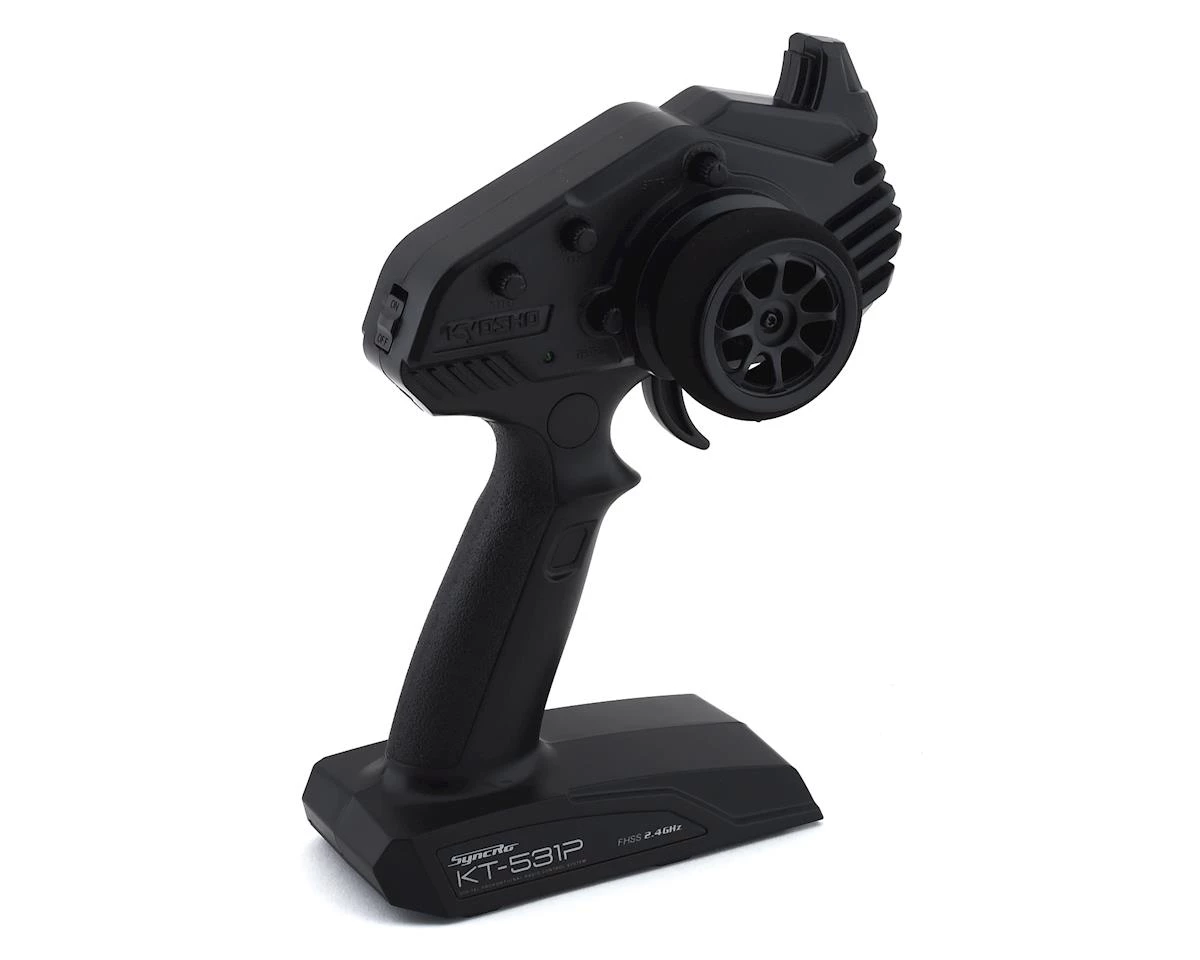 Including the latest Syncro KT-531P transmitter with steering trim, throttle trim, dual rate, LED control function, the sponge grip of the steering wheel provides comfortable fit for precision control feel. The set also includes a car body finished to display-model standard that matches stunning style with the performance, reliability and durability of the MR-03 chassis. The control program on the circuit board provides linear handling characteristics and can be further enhanced for even easier control by installing the optional gyro unit (KYOMZW431). This series represents the perfect package for a deep dive into the amazing world of R/C cars!