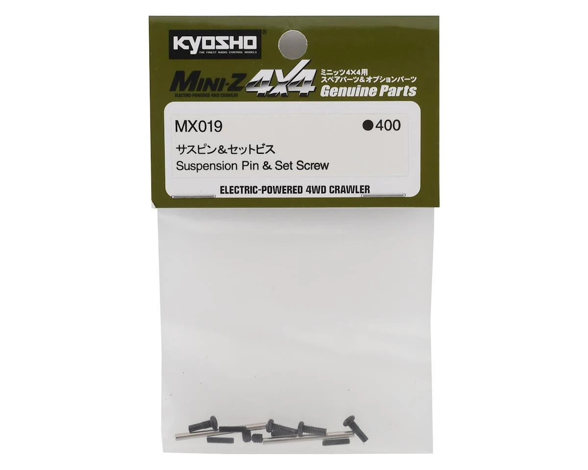 This is a replacement Kyosho MX-01 Suspension Pin and Set Screw, intended for use with the Kyosho MX-01 Mini-Z 4X4 kits.