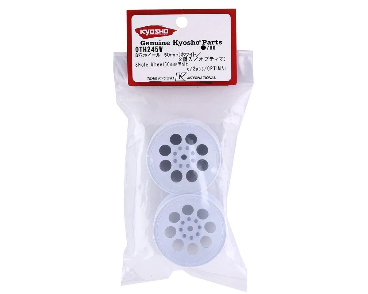 Kyosho Optima 8 Hole 50mm Wheel with 12mm Hex. These optional wheels are intended for the 2016 Kyosho Optima. Package includes two wheels.Â