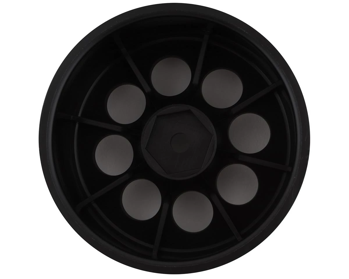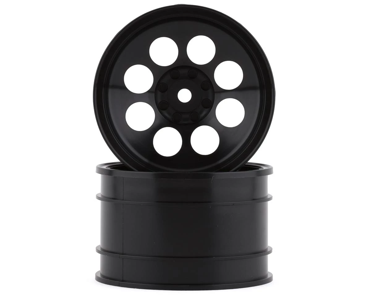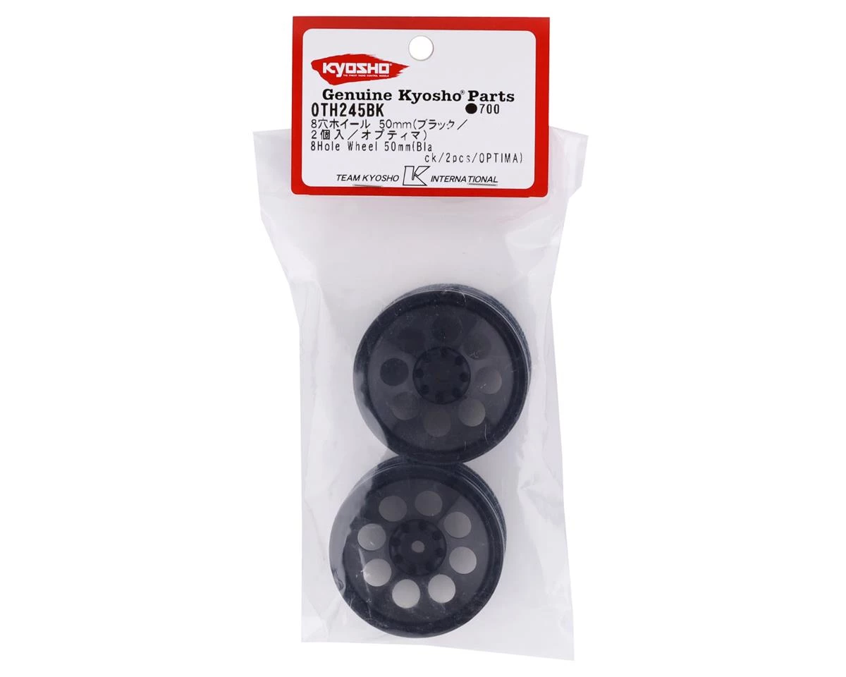 Kyosho Optima 8 Hole Wheel. These optional 50mm wheels are a color variation of the factory wheels found on the Kyosho Optima or Javelin. Package includes two black wheels.