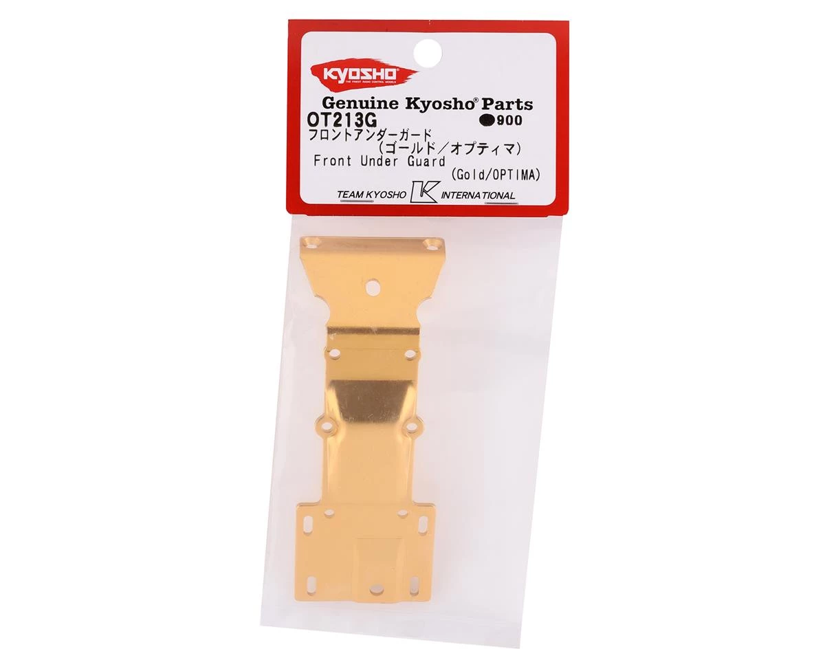 Kyosho Optima Front Under Guard Plate. This optional under guard plate has been anodized gold to add some bling to your Kyosho 2016 Optima. Package includes one under guard plate.