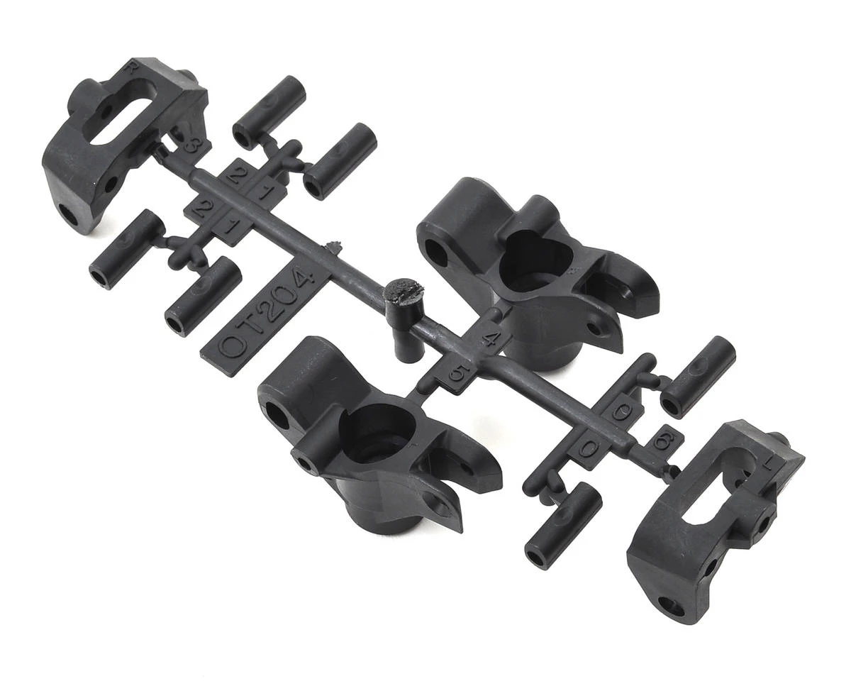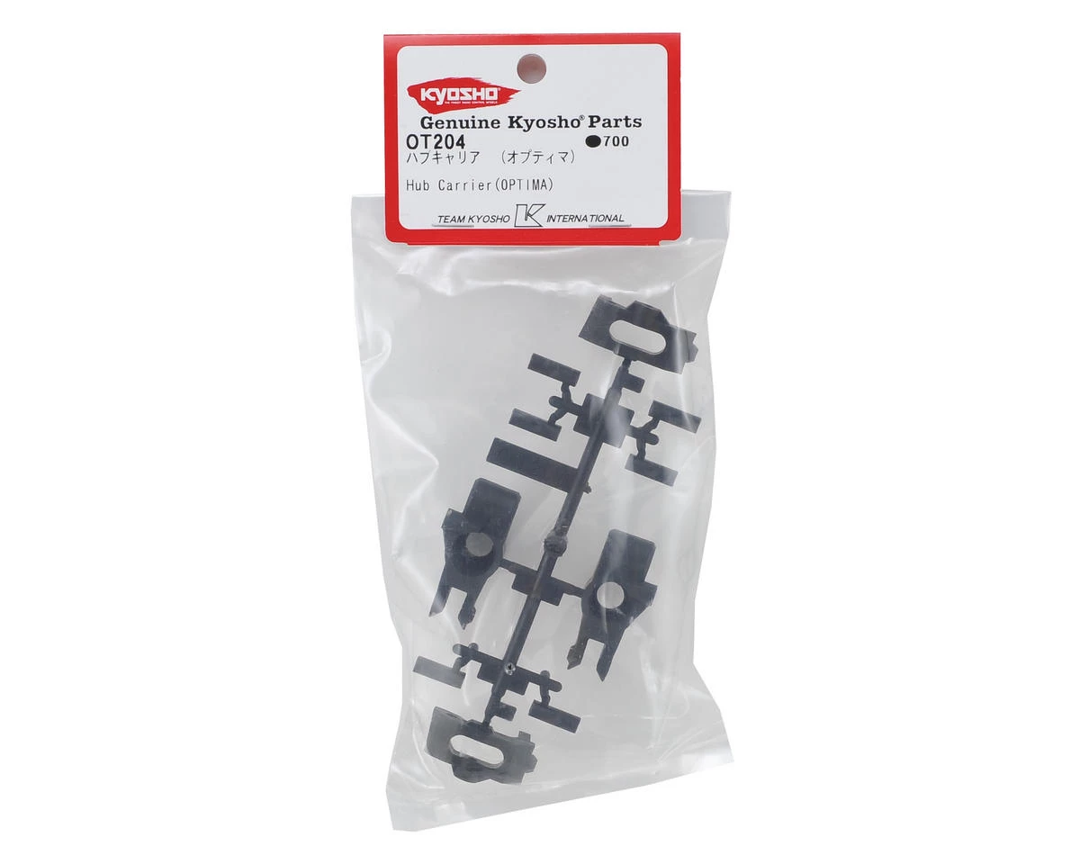 The Kyosho Hub carrier set for the Optima 2016 includes front c hubs, rear hub carriers, and rear toe inserts.