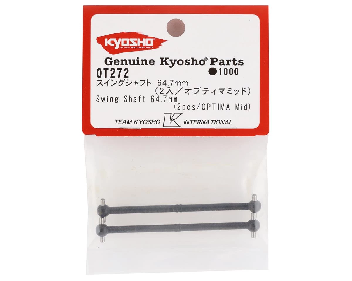 Kyosho Optima Mid 64.7mm Swing Shaft. This is a replacement intended for the Optima Mid buggy. Package includes two 64.7mm long swing shafts.Â