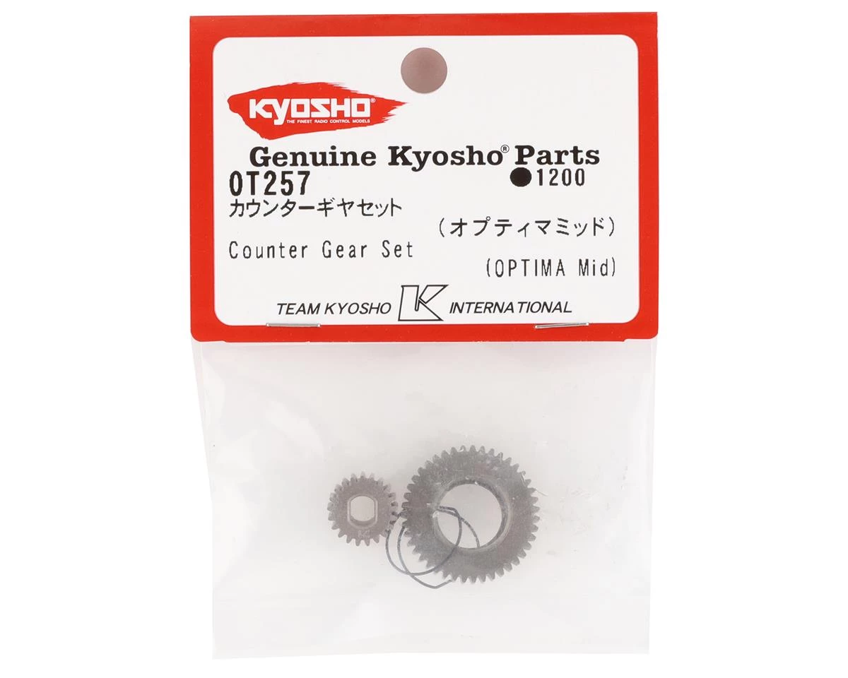 Kyosho Optima Mid Counter Gear Set. This is a replacement intended for the Optima Mid buggy. Package includes metal counter gears and retaining clips. Â