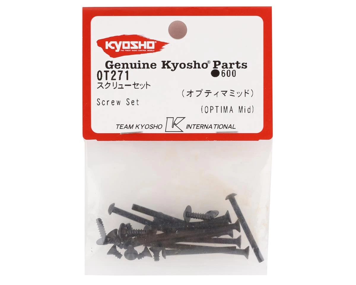 Kyosho Optima Mid Screw Set. This is a replacement intended for the Optima Mid buggy. Package includes the various screw sizes used on the Optima Mid buggy. Â
