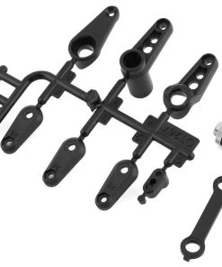 Kyosho Optima Mid Servo Saver Set. This is a replacement servo saver set intended for the Optima Mid buggy. Package includes one servo saver parts tree and one threaded aluminum servo saver assembly with spring installed.