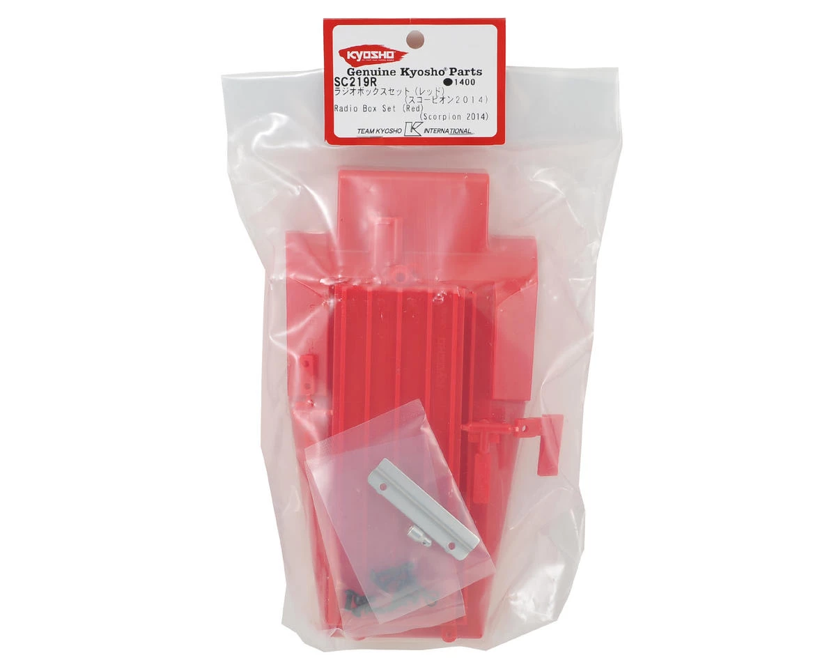 This is an optional Kyosho Scorpion 2014 Radio Box Set. This red radio box set includes all the components and hardware needed to give your Scorpion chassis a racy red look.