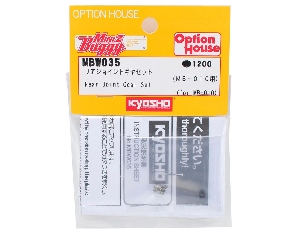 This is an optional Kyosho Rear Joint Gear. This metal gear is precision cast to increase the durability and efficiency of your Mini-Z buggy.Â