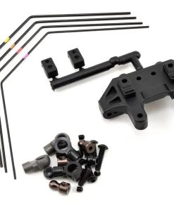 This is an optional Kyosho Mid Motor Rear Stabilizer Set. This kit allows you to add sway bars to the rear of the RB6 when using the mid motor position, allowing you to adjust the chassis roll, and tune the amount of side grip the car has. This has a huge affect on on-power steering, as well as mid corner stability and at corner exit.