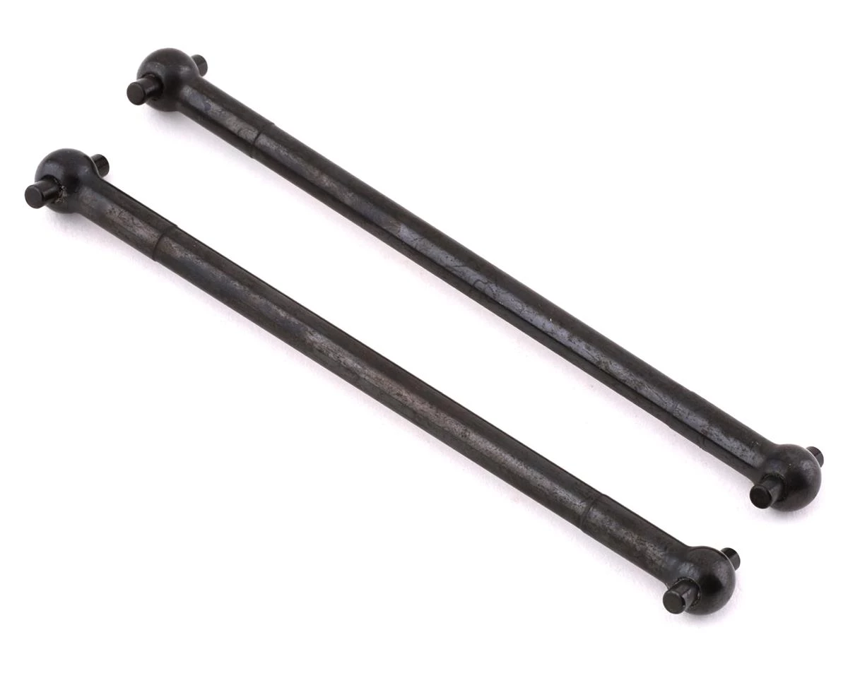 This is a set of two replacement rear dog bone swing shafts for Kyosho buggies, and fits the Inferno MP7.5 and Inferno MP777 family of buggies. This the stock rear center dog bone that comes with the regular kits, not the Kanai and Special kits. These are the dog bones that transfer power from the rear differential out to the rear drive hubs to power the wheels.