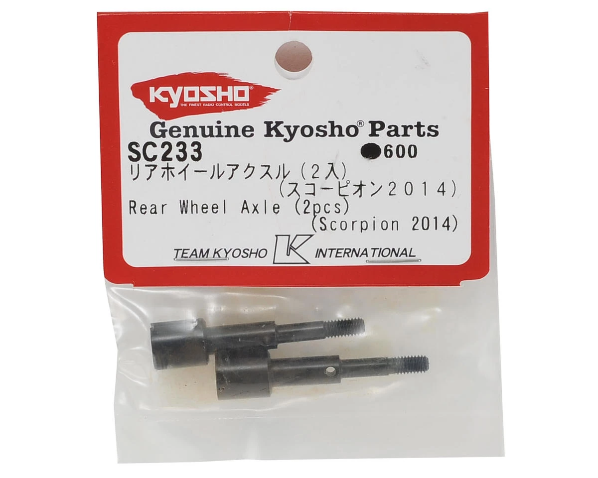 This is a pack of two replacement Kyosho Scorpion 2014 Rear Wheel Axles.