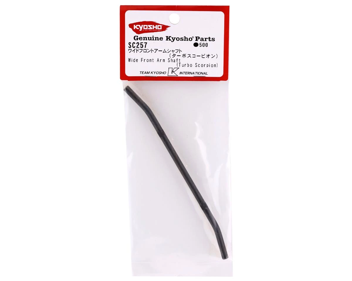 Kyosho Scorpion Wide Front Arm Shaft. This optional arm shaft is intended for the 2014 Kyosho Scorpion. Package includes one front arm shaft.
