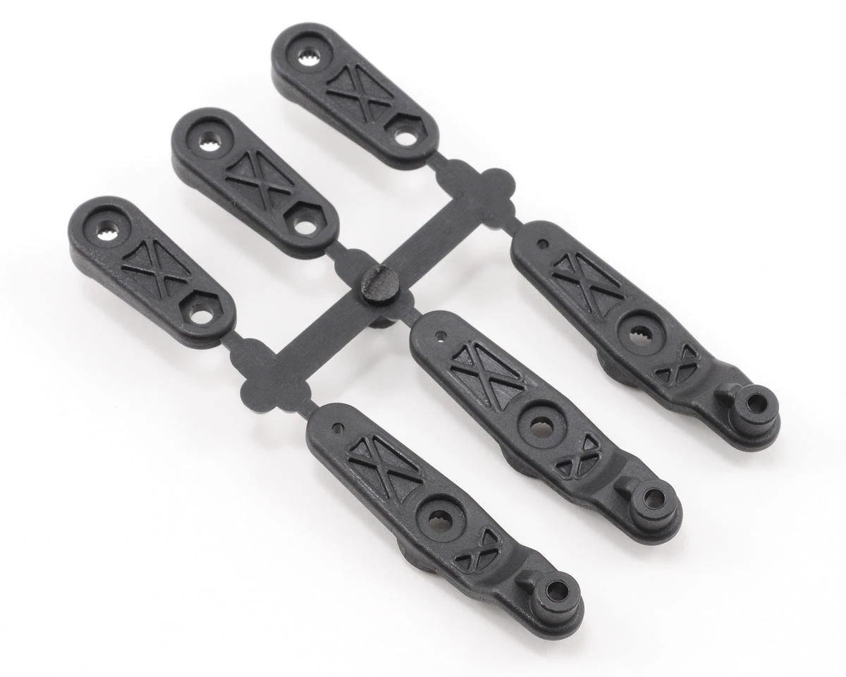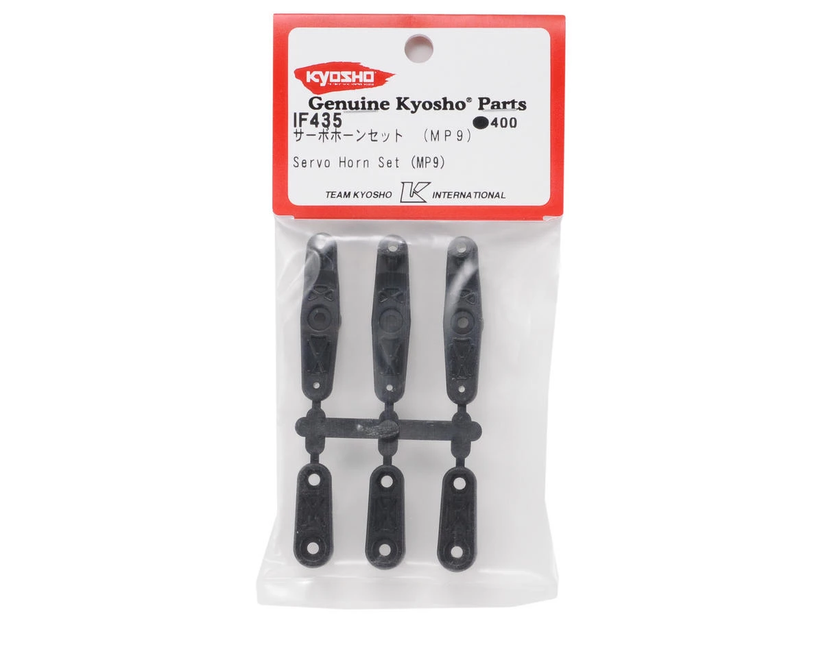 This is a replacement Kyosho Servo Horn Set. This set includes one steering and one throttle horn in 23, 24 and 25 tooth splines.Â