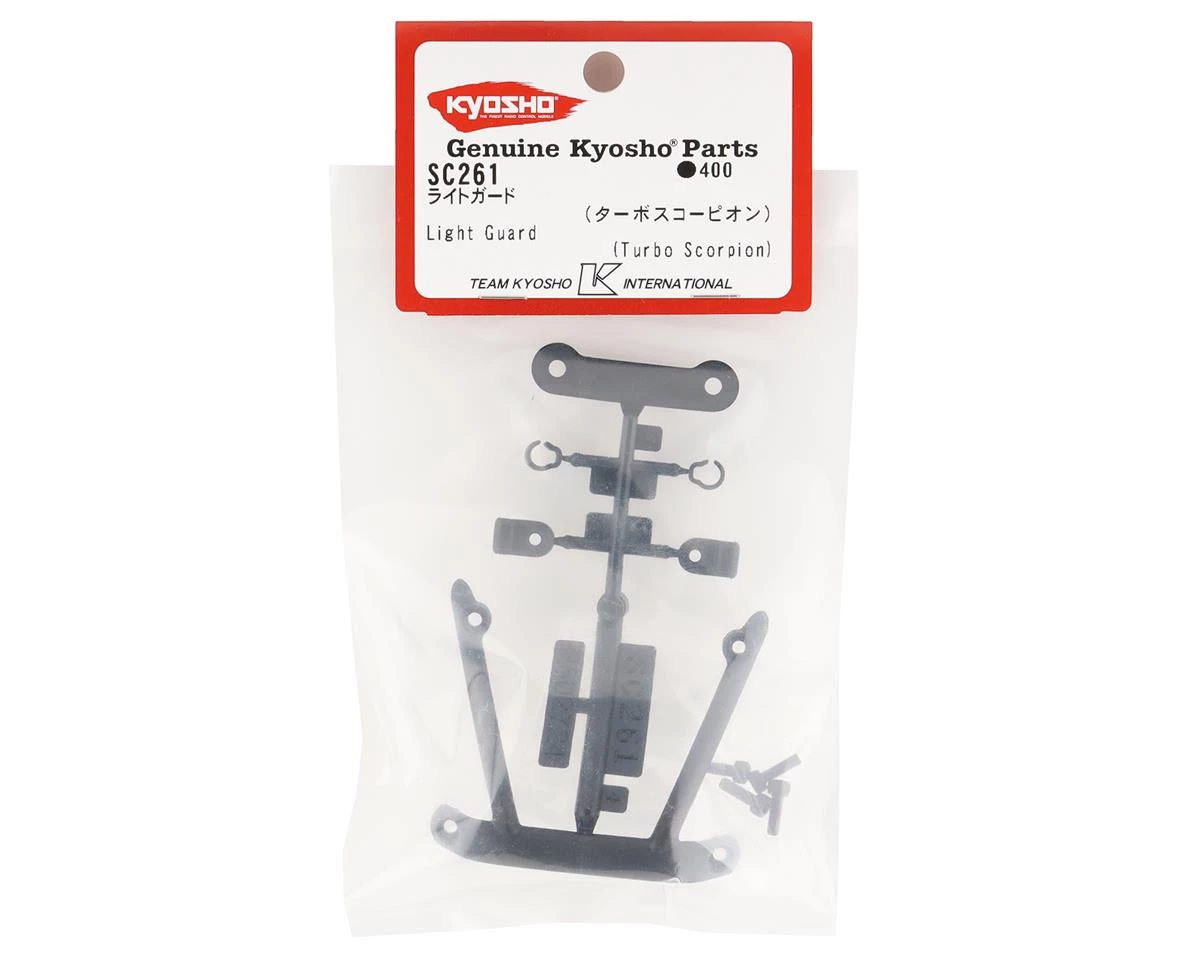 Kyosho Turbo Scorpion Light Guard Set. This replacement light guard set is intended for the Kyosho Turbo Scorpion. Package includes one light guard set.