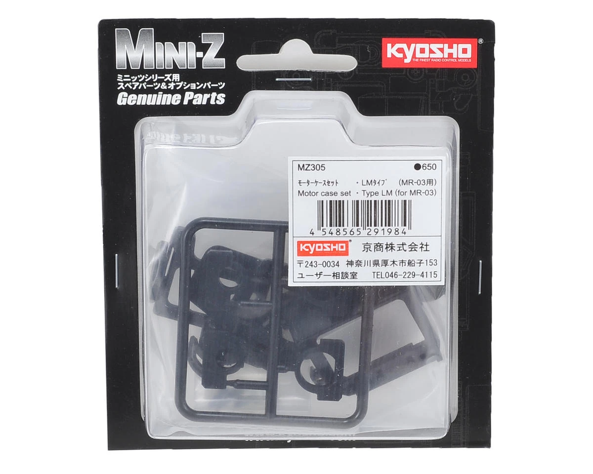 Kyosho Mini Z MR-03 Type LM Motor Case Set. Package includes the parts needed to equip your MR-03 chassis with a LM motor configuration.