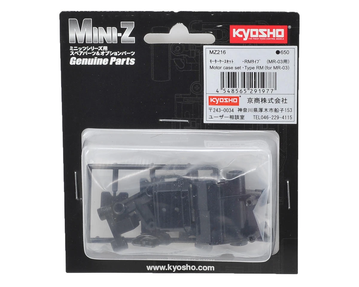 Kyosho Mini Z MR-03 Type RM Motor Case Set. Package includes the parts needed to equip your MR-03 chassis with a RM motor configuration.