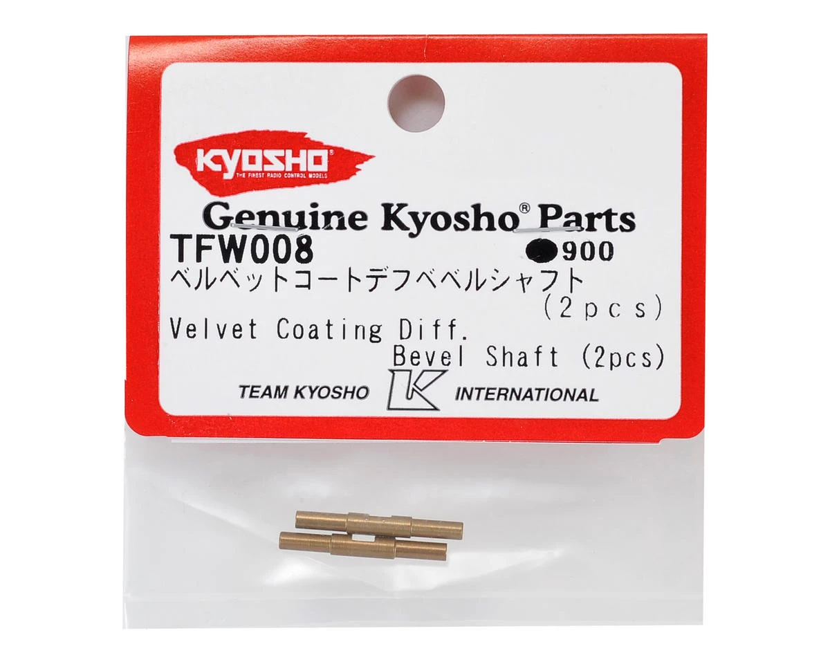 This is an optional Kyosho Aluminum Velvet Coated Differential Bevel Shaft Set. These bevel shafts are an awesome upgrade for the Kyosho Ultima Gear Differential (KYOUMW604). The precision machined aluminum bevel shafts are lighter than the standard steel parts, and the velvet coating provides a smooth, low friction surface that will help to improve the overall performance of the vehicle.Â