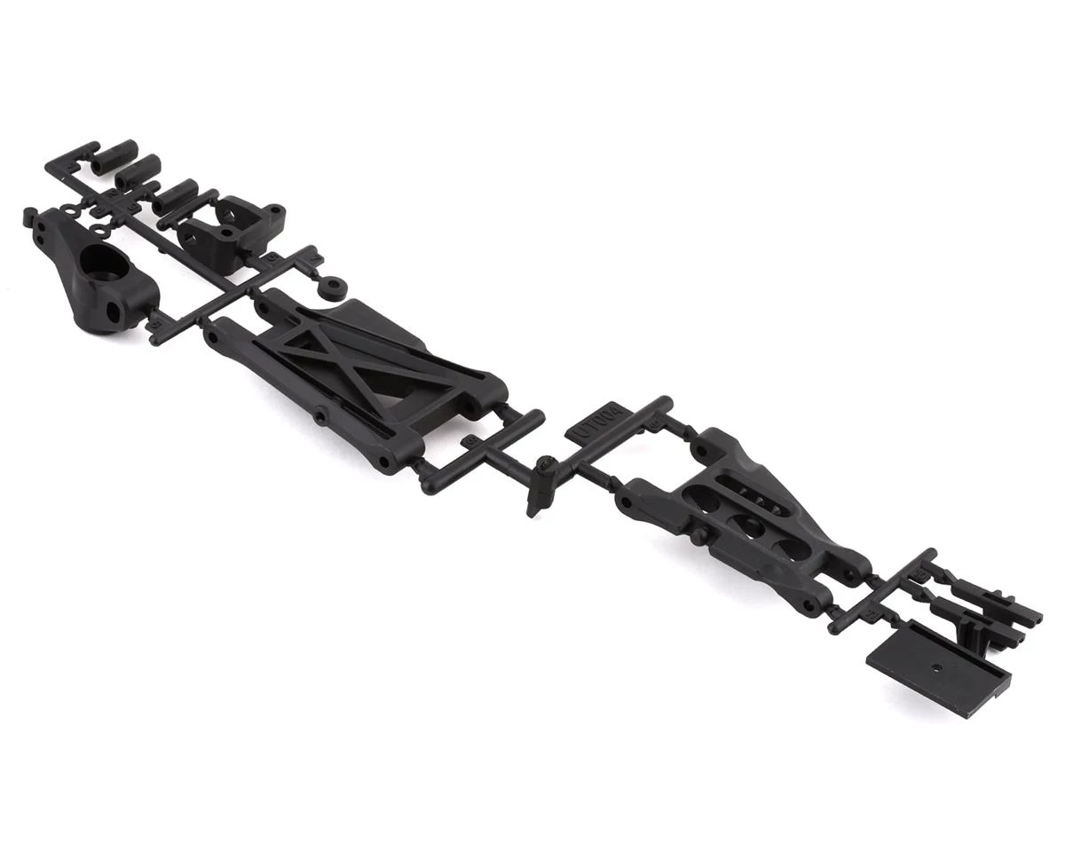 Kyosho Ultima Suspension Arm Set. These replacement suspension arms are intended for the Kyosho Ultima. Package includes one front suspension arm, one rear suspension arm, one C-block, one rear hub and inserts that can be used on the right or left side of the chassis.