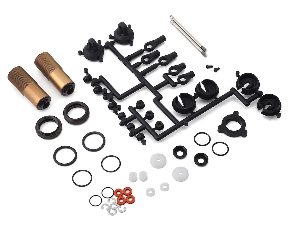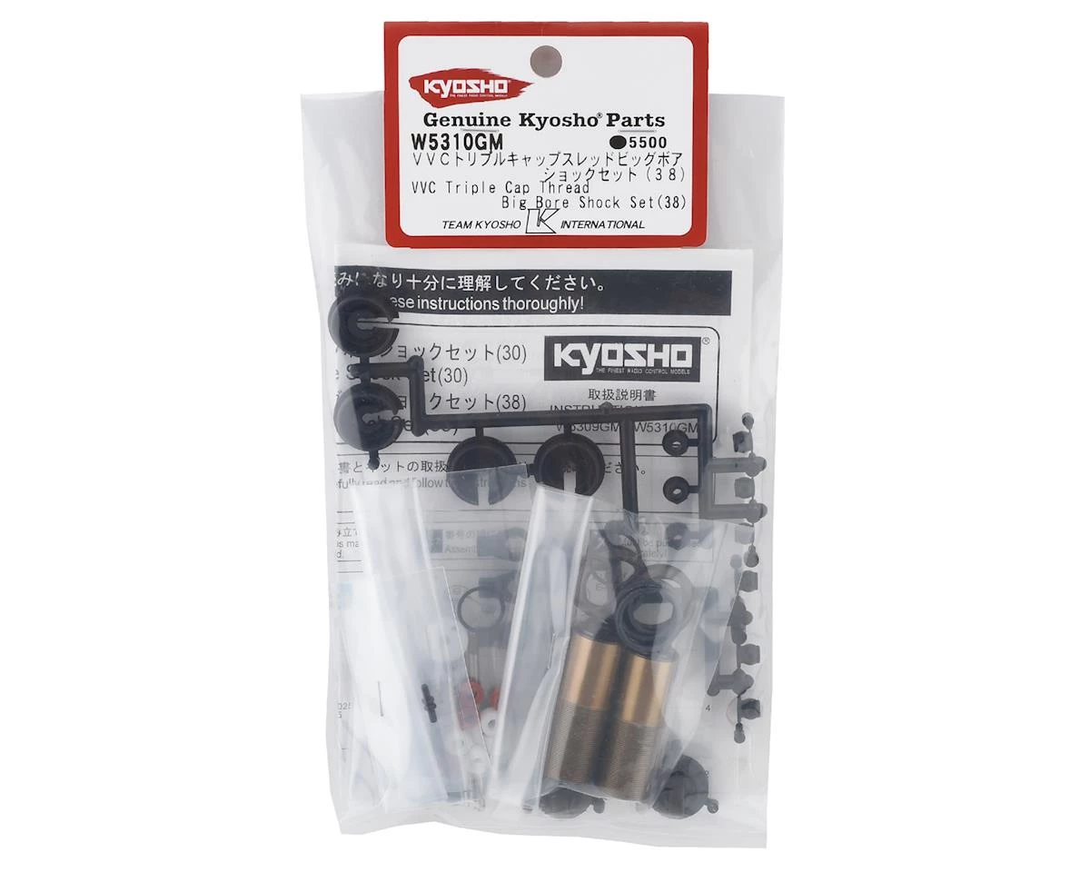 The Kyosho Velvet Coated 38mm Threaded Big Bore Shock Set is a replacement for the Ultima RB7SS that can also be used with the RB6 as an optional upgrade. Package includes the parts needed to build two shocks, but does not include shock springs or shock oil. Â
