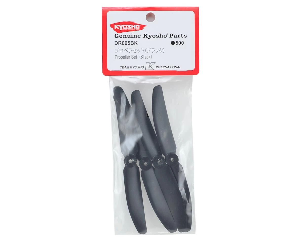 This is a replacement black propeller set from Kyosho. Intended for use with the Zephyr and G-Zero drone racer. Package contains two clockwise and two anti-clockwise propellers – marked either “A” or “B” – in black color.