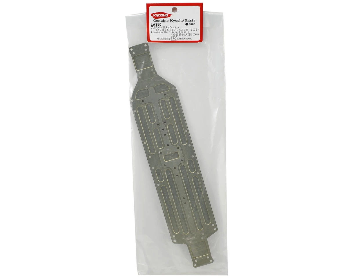 This is a replacement Kyosho Lazer ZX-6 Hard Anodized Aluminum Main Chassis.Â