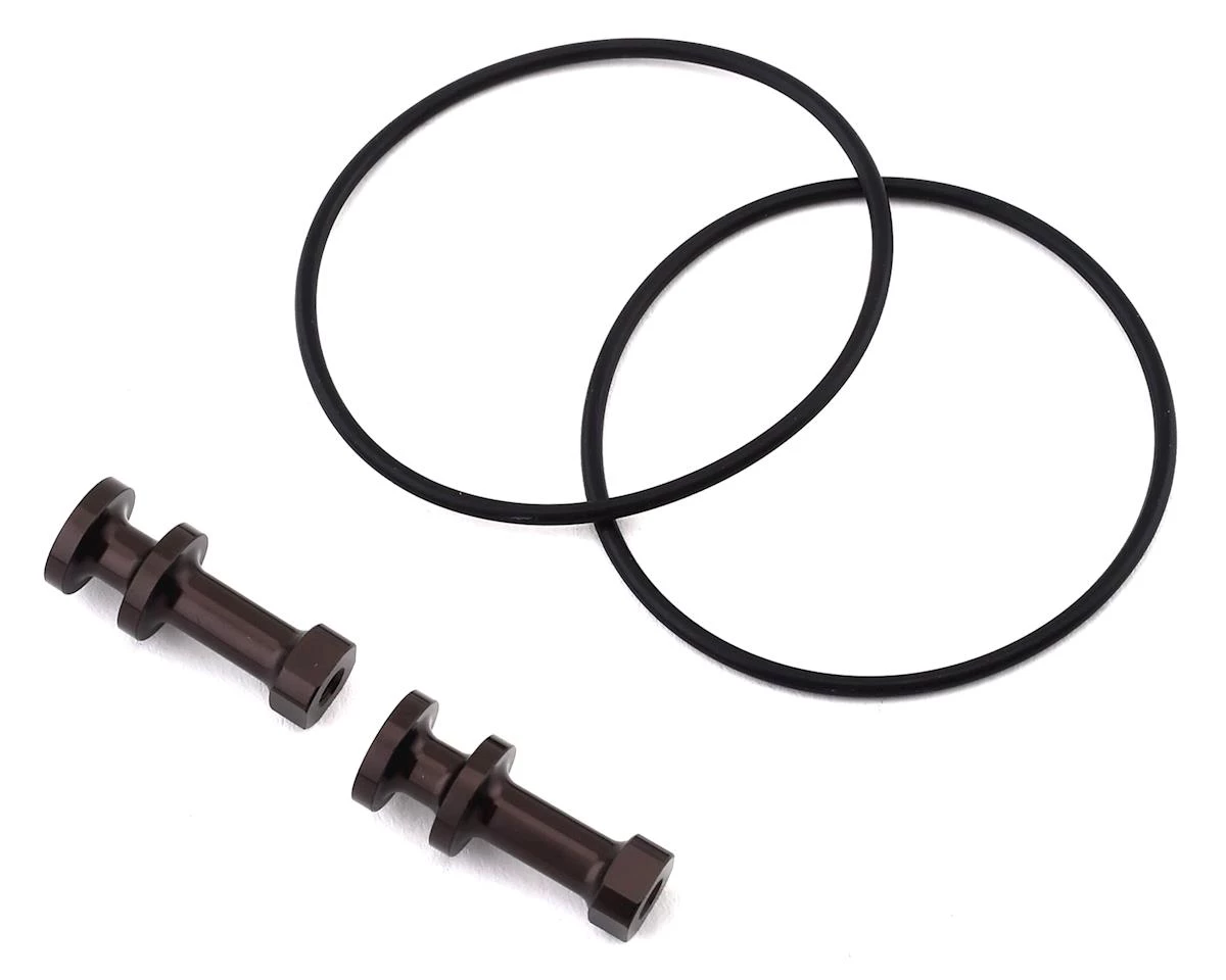 This is an optional Kyosho ZX7 Battery Post Set, intended for use with Lazer ZX7 kits. By changing the battery fixing method from the battery plate with fixing nut type to the O-ring type, it becomes easier to create chassis rolls, delivering a smoother drive feeling on landing and bumpy tracks. The height of the battery is compatible with both standard type and 1S size by changing the mounting position.